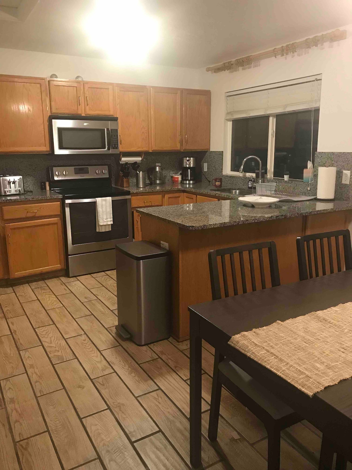 Our space offers the following: -Private upper level of home w/ own entrance & carport parking space -Large space w/ lots of natural light -Full kitchen w/ sink, oven, stove, dishwasher, coffee/tea, fridge, utensils/appliances, etc. -Washer and dryer -Huge fenced yard w/ BBQ grill & fire pit -Family room w/ big screen 4KTV & comfy couches -Dedicated office for remote workers -2 large bedrooms w/ KING size beds/new mattresses -Lightning fast WIFI