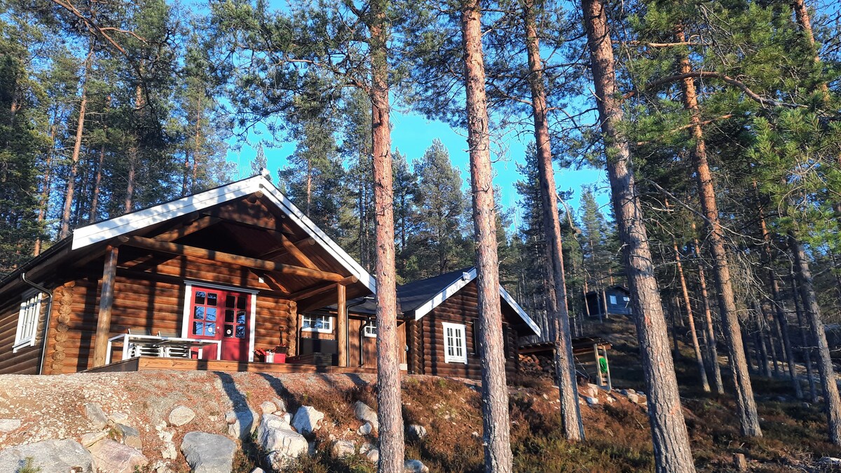 Mahtava mökki Glomman varrella saunalla