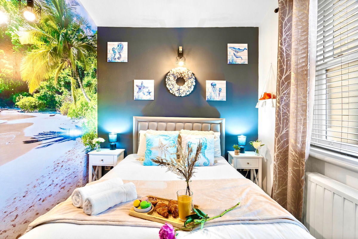 "International"🏢 -sviitti. Rentoudu tässä erinomaisen suhteessa hintaansa erittäin suuressa korkeakattoisessa valoisassa kahden hengen makuuhuoneessa, jossa on oma kylpyhuone. Itsenäinen ja hyvin sijoitettu suuressa turvallisessa viktoriaanisessa perhekodissa. Sijaitsee Southsean parhaan tarjonnan sydämessä; lähellä kaikkia ravintoloita ja baareja, mutta silti yksityisesti sijaitseva lomakohde. Ihanteellinen tukikohta pariskunnille/yksin matkustaville rentoutumiseen, nauttimiseen ja tutkimiseen. Huippulaatuinen patja, erittäin suuri älytelevisio Xbox Ultimella. Istu ihastuttavassa puutarhassa. 🚘12 tunnin/24 tunnin katupysäköintiluvat 5 £/10 £/kpl.