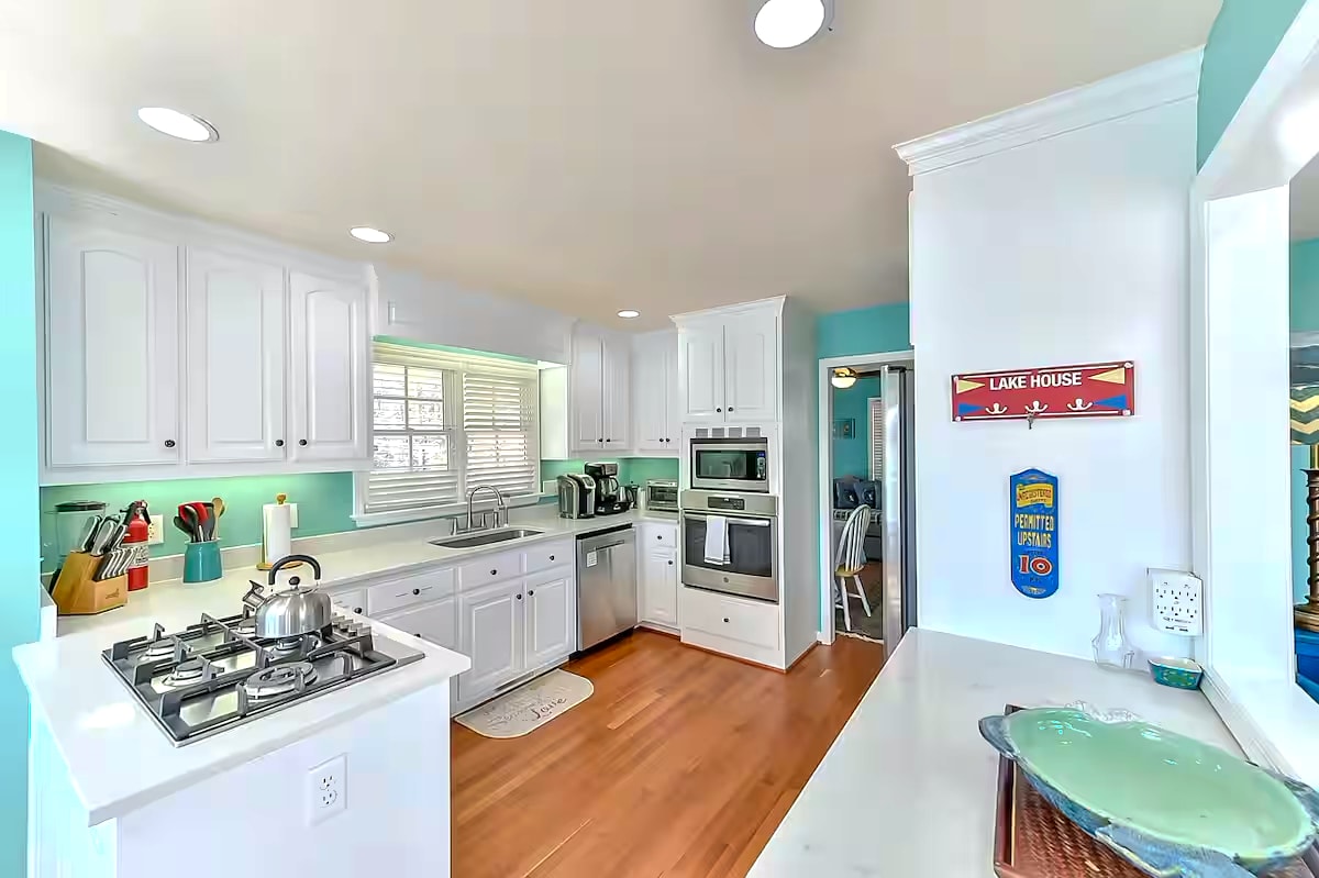Aiemmin ilmoitettu kohde, jolla on arvio 4,99 ja 357 arvostelua. Tässä keskellä vuosisataa sijaitsevassa modernissa lomakohteessa on lattiasta kattoon ulottuvat lasiseinät, jotka päästävät ulkoilman sisään, kauniit paljaat puupalkit, kovapuulattiat ja viihtyisä betoninen takka. Nauti suojaisasta kuistista, päivitetystä keittiöstä ja upeista järvinäkymistä. Yksityiselle telakalle johtava loiva rinte on täynnä lepopaikkoja. Kätevästi Triangle-, Triad- ja VIR-alueiden lähellä, se on täydellinen lomakohde, jossa on rentoutumista ja seikkailua.