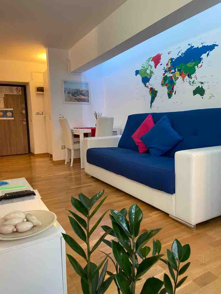 Sijainti sijaitsee kaupungin keskustassa, ja siellä on yksityinen pysäköintialue. Huoneisto on tilava (60 neliömetriä), ja siinä on erityinen sisustus ja oma kylpyhuone. Mukavuudet: WIFI, TV Netflixillä ja Amazon Prime Video, ilmastointi, täysin varustettu keittiö, pesukone, hiustenkuivaaja, ensiapupakkaus, palosammutin. Vieraat hyötyvät 15%: n alennuksesta kohteissamme Piata Unirii Cafe ja Tiki Bistro -ravintola, ja he voivat valita aamiaisen, a la carte -menun tai huoneen.