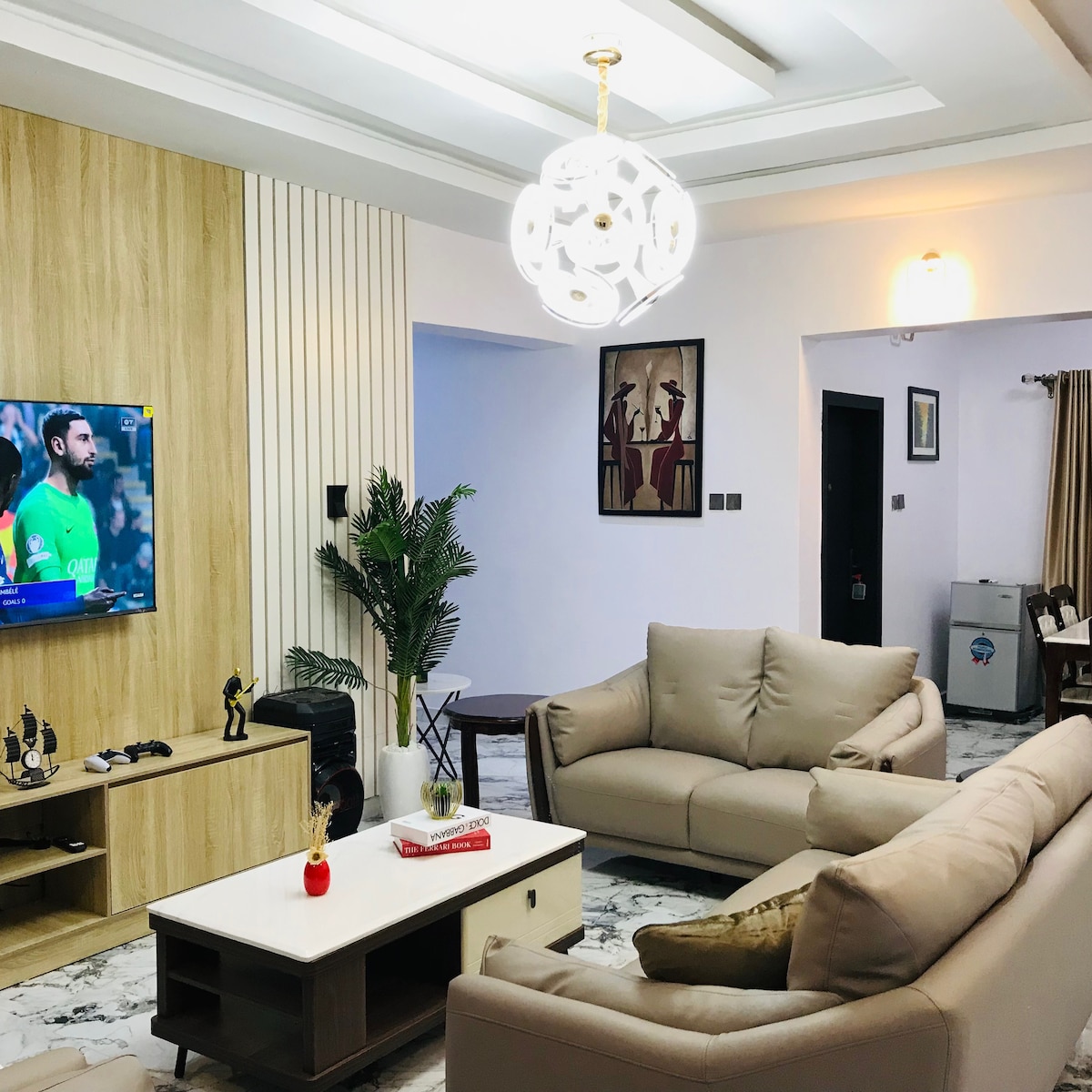 Relax with the whole family at this peaceful place to stay. Its a 3 bedroom apartment just behind Anchor Mall, Off Alao Akala express, Zionist estate. it is a quiet place without apartment sign notice ,it was made for people that don't like disturbance but want to stay in an apartment. 24hrs electricity; 4sitter dining, WI-FI, Balcony; 4pcs AC, Refrigerated freezer; Ensuite, nice Chandelier, Tiled floors, suitable wardrobes, 3pcs Smart TVs, Microwave, 4pcs water heaters and 2 CCTV cameras.