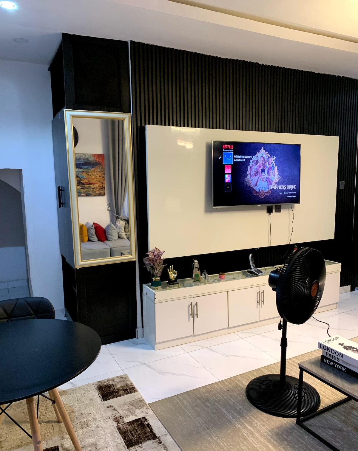 Rentoudu tässä hienossa kohteessa. Kotisi poissa kotoa odottaa sinua. Ylelliset KING-SIZE-VUOTEET, joissa on ympärivuorokautinen sähkö ja turvallisuus. Tämä huoneisto sijaitsee keskeisellä paikalla uuden talouskeskuksen, Ibeju Lekkin, sydämessä. 9 minuutin päässä Lakowe Lakes Estate -golfkentältä. Se on lähellä Dangoten jalostamoa, Lekkin vapaakauppa-aluetta, supermarketteja, museoita, yöelämää ja rantoja. Ilmainen WiFi ja pysäköinti.