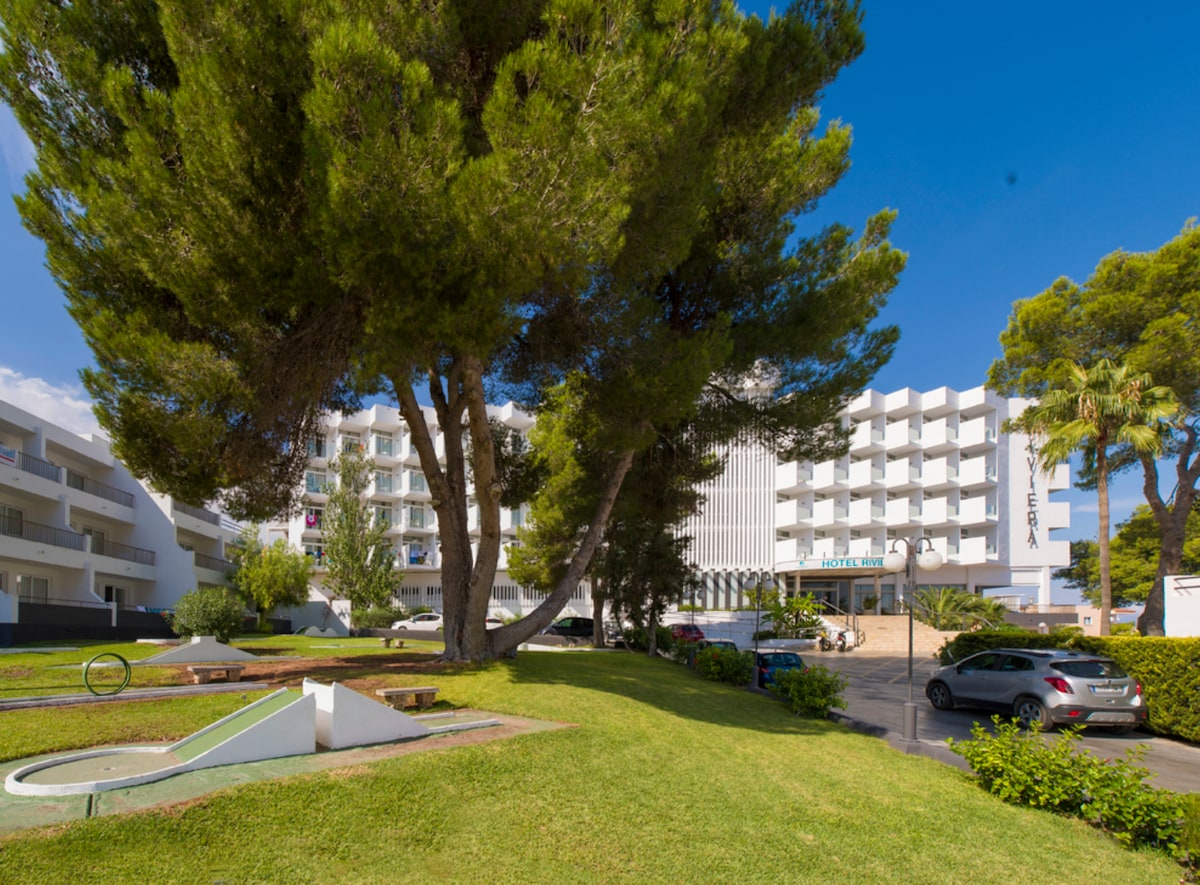 El hotel se encuentra en la mundialmente conocida zona de Playa d’en Bossa, a 20 min andando de Ushuaïa o Hard Rock, a 8 min del aeropuerto y a 2,6 km del centro de Ibiza. Para desplazarse por la isla hay a 100 m del hotel una parada de autobús de cada segundo en este maravilloso alojamiento. Wifi gratuito, tanto en las habitaciones como en el hotel.