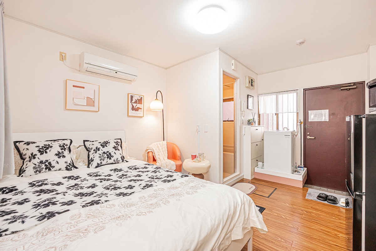 Rauhallinen uusi Japandi Studio|Lähellä JR:ää ja metroa|Pyykinpesu ja kuivaus yhdessä laitteessa|Hissi|Matkatavaroiden säilytys