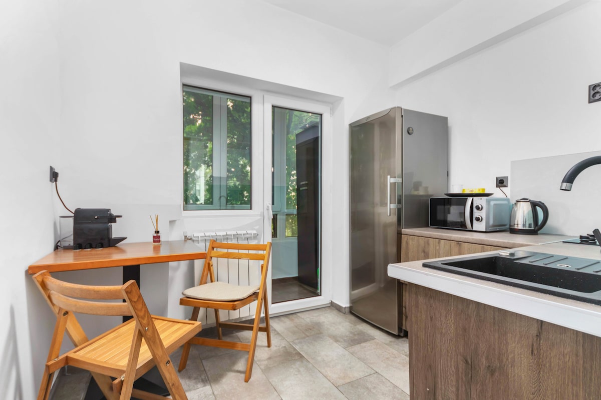 Mukava ja moderni huoneisto, josta on upeat näkymät parvekkeelta. Sijaitsee lähellä kaupungin keskustaa (1 minuutin päässä Mihai Bravun metroasemalta). Kattopuutarha ja ilmainen kuntosali kaikille vieraille. Ilmainen pysäköinti rakennuksen alueella. Huoneistossa on lattialämmitys ja kaikki tarvittavat mukavuudet: - Pyykkitupa - HD-älytelevisio (Netflix sisältyy) - Kahvinkeitin - Silitysrauta - Vaateripustimet - Puhtaat lakanat - Pyyhkeet - puhdistusaineet - aterimet - lautaset - lasit - pannut ja kattilat