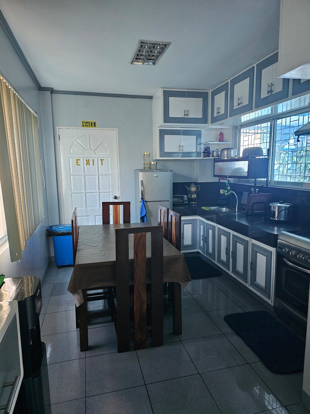 Mukava ja tilava, 120 neliömetrin täysin kalustettu huoneisto, joka sijaitsee rauhallisella alueella Baguio Cityssä lähellä The Mansionia. Yksikössä on 2 makuuhuonetta, 3 wc:tä ja kylpyhuonetta, olohuone, 8-paikkainen ruokapöytä ja täysin varustettu keittiö. Huoneistokompleksissa on portti, ympärivuorokautinen vartiointi ja nopea wifi. Tarjolla on ilmainen, tilava, turvallinen ja suojattu 2-kerroksinen pysäköintialue. Se on muutaman metrin päässä päätieltä ja julkisesta liikenteestä. Ilmoita tarkka henkilömäärä, joudun tarkistamaan.