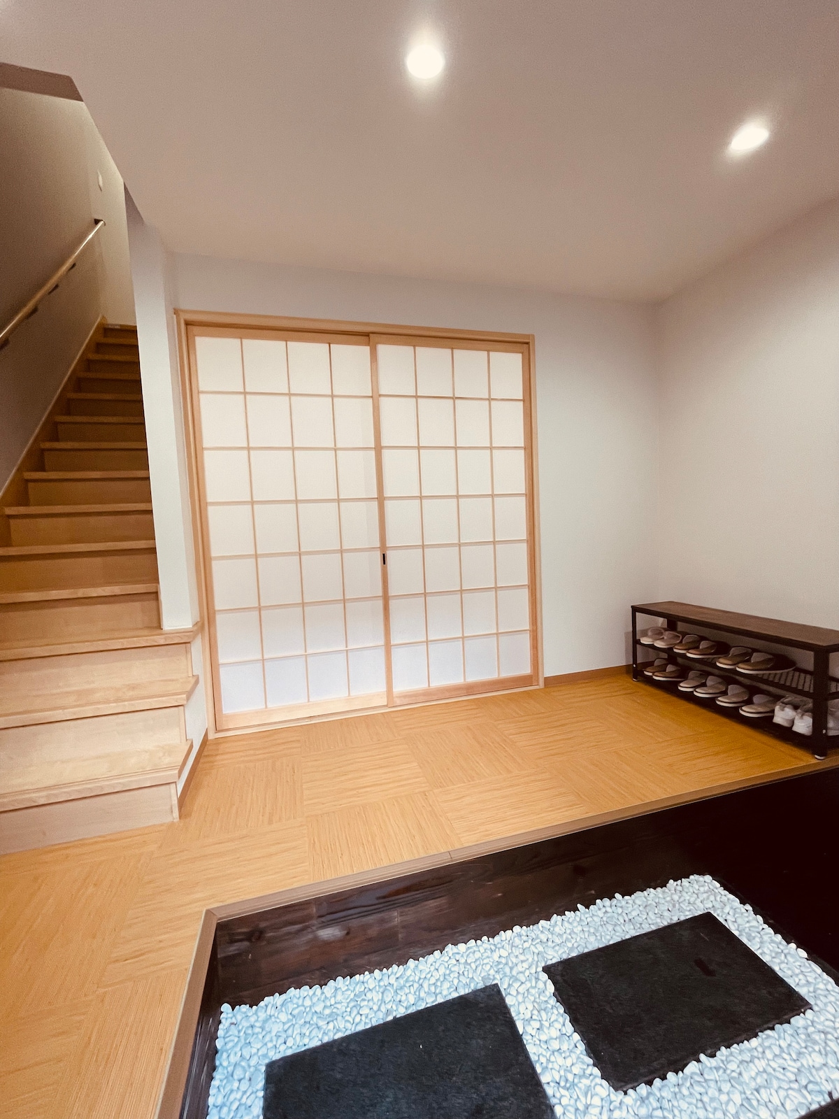 Uusi japanilainen huvila, rakennettu vuonna 2023, lupa saatu kesäkuussa 2025, majoitetaan 10 henkilöä, lentokenttä 32 minuutin päässä, Namba 5 minuutin päässä, pysäköinti mahdollista