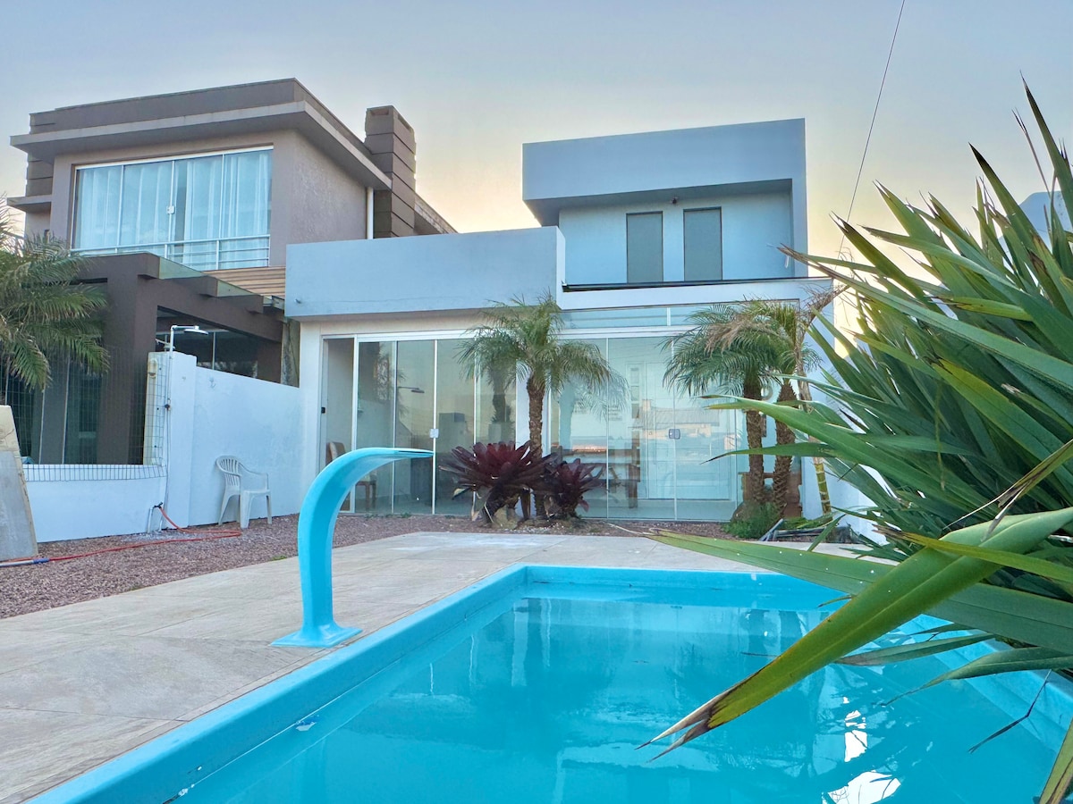 Kodikas kaksikerroksinen talo vaakasuorassa kondominoitumissa meren rannalla. Miellyttävä ympäristö, valmistettu erittäin huolellisesti erityisesti sinulle, jotta voit kokea erityisiä hetkiä perheen ja/tai ystävien kanssa. Asuinalueella on urheilukentokenttä, kuntosali, lasten leikkipaikka ja uima-allas. Uima-allas on lämmitetty kesäkaudella, siinä on infinity-allas ja kaunis merinäkymä. Loistava vaihtoehto nauttia Rio Grande do Sulista ympäri vuoden.