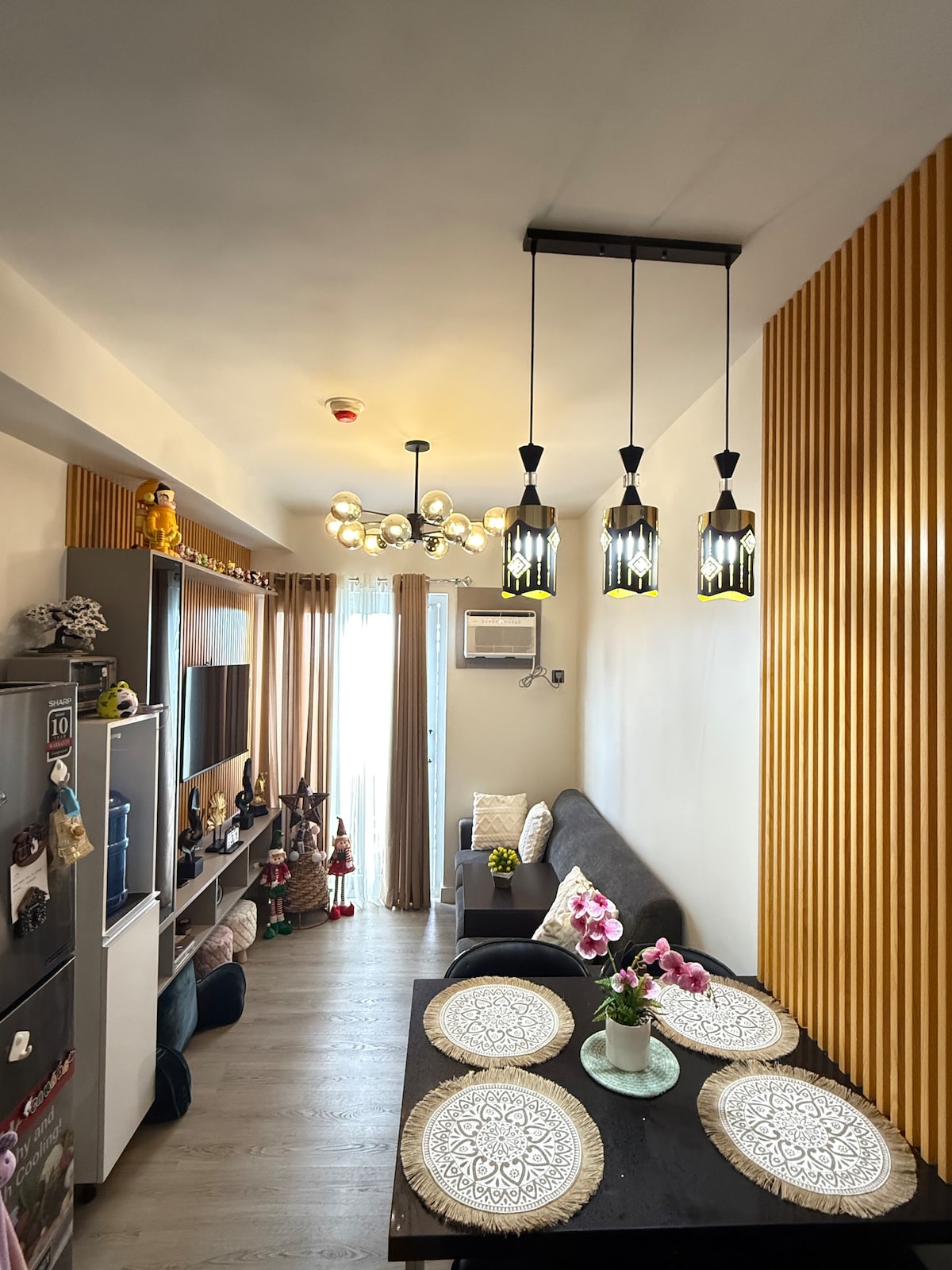 🥳MUKAVUUTTA, JOKA SOPII BUDJETTIISI!️ Miksi tinkiä mukavuudesta, kun voit saada kaiken? Huoneistomme tarjoaa rentoutumisen keitaan, joka ei venytä kukkaroasi. Meillä on ilo toivottaa sinut tervetulleeksi Annen vaatimattomaan ja minimalistiseen huoneistoon. Sijaintimme on Modena Townsquare, Tunghaan Minglanilla Cebu. Täällä huoneistossamme voit nauttia Netflix-ohjelmiesi ja YouTuben katselusta. Voit tilata ruokaa ja nauttia ateriastasi parvekkeella, jolta on näkymä vuorelle. Kuuma ja kylmä suihku saatavilla