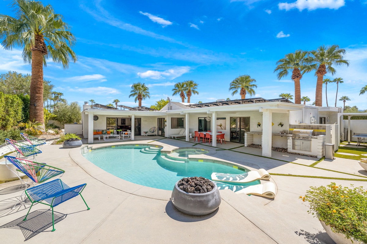 Vuosisadan puolivälin tyylinen kotimme on tyylikkäästi modernisoitu, mutta se säilyttää aikakauden viehätysvoiman. Siinä on 4 makuuhuonetta/3 kylpyhuonetta (2 master-sviittiä päärakennuksessa, 1 erillisessä casitassa). Takapihalla on yksityisen lomakohteen retrohenkeä, ja siellä on käsin maalattu seinämaalaus, suolavesisallas ja kylpylä, kaasukäyttöinen nuotiopaikka, grillausmahdollisuus, uima-allaslelut, katettu patio, jossa on runsaasti paikkoja rentoutua, ja yli 50 vuotta vanha greippipuu. Haluaisimme mielellämme majoittaa sinut erittäin vahvalla WiFi-yhteydellä, vuoristomaisemilla ja raikkaalla aavikonilmalla. Palm Springsin kaupunki, tunnus #3033