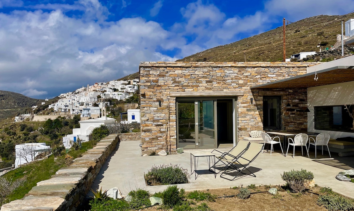 Viihtyisä kivitalo henkeäsalpaavilla näkymillä Egeanmerelle