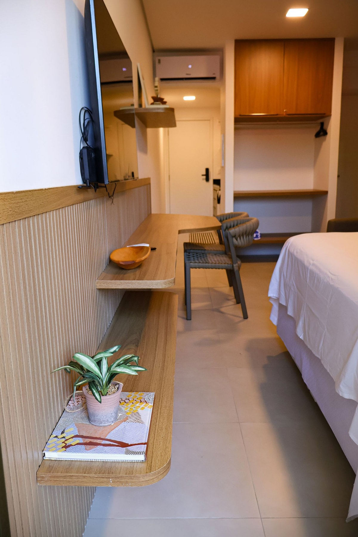 Situado na melhor localização de Itacaré, você poderá usufruir das melhores praias urbanas e do centro turístico (Pituba), apenas caminhando. O apartamento foi planejado para que você tenha tudo o que necessita para sentir-se em casa. Mas com o diferencial de ter a sua disposição um serviço diário gratuito de limpeza e arrumação. Além disso, você poderá recarregar o seu carro elétrico em uma ótima estação (Wallbox) de 7 Kw com conector tipo 2 de 32 A a 220V.
