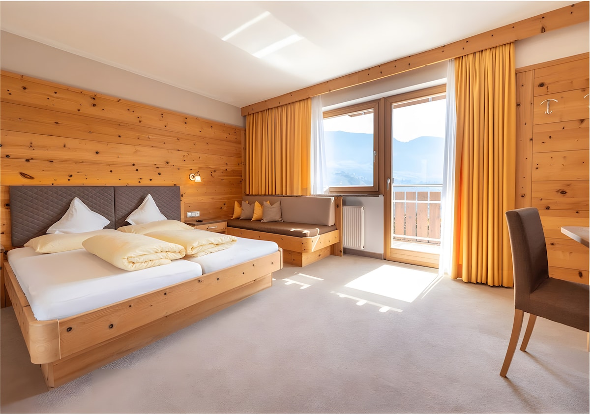 Room Passerblick Silber Zimmer 5 in Tirolo offers 24 sqm of space for 1 guest. You have 1 bedroom and 1 bathroom during your stay. The room features step-free access and step-free interior for your convenience. Private amenities include high-speed WiFi suitable for video calls, television, dedicated workspace, balcony with mountain view, baby bed, highchair, and breakfast included. An elevator provides private access to your accommodation.