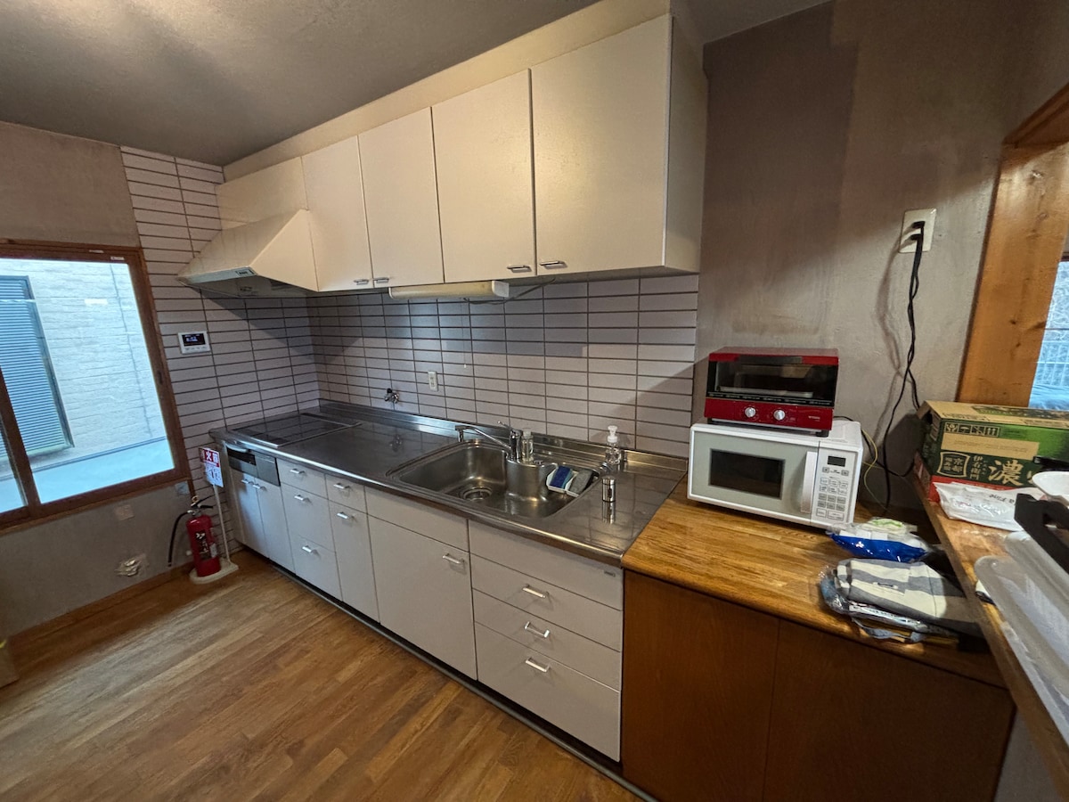 Se on kätevällä paikalla, josta on erinomaiset kulkuyhteydet ja josta on helppo päästä minne tahansa.Se on täydellinen tukikohta nähtävyyksiin tutustumiseen ja liikematkoihin, sillä Osakan asema on vain 20 minuutin junamatkan päässä, Takarazukan asema 15 minuutin päässä ja USJ, Yumeshiman asema ja Namba alle tunnin päässä junalla. Kävelyetäisyydellä on vanhanaikainen ja lämmin ostoskatu, ja myös Osakan yliopisto on lähellä, joten voit nauttia kohtuuhintaisesta shoppailusta ja ruokailusta, joka on ainutlaatuista opiskelija-alueella. Viereinen akupunktioklinikka on pitkän historian ja todistetusti parantava klinikka, jossa on paljon potilaita eri puolilta maata.Jos olet vieras, hyväksymme akupunktio- ja moksipolttohoidot (lisämaksusta). Pääsy Noin 17 minuuttia 🚞Hankyu Osaka Umedan asemalta Takarazuka-linjan Ishibashi Saka-Daiman asemalle ja sieltä 5 minuutin kävelymatka Noin 7 minuuttia taksilla Osakan kansainväliseltä lentoasemalta (✈️Itamin lentoasema), noin 10 minuuttia bussilla (lyhyt kävelymatka "Ishibashi North Exit" -pysäkiltä) Noin 3 minuutin kävelymatka 🚌Hankyu-bussin Iguchido-pysäkiltä (kohti Minohia, Ibarakia) Noin 4 minuutin ajomatkan päässä 🚘Chugoku Expressway "Ikeda Interchange" -liittymästä, noin 5 minuutin ajomatkan päässä Hanshin Expressway No. 11 Ikeda Line -liittymästä Mukavuudet Täysin varustettu pyyhkeillä, lakanoilla, liinavaatteilla, shampoolla, vartalosaippualla, hiustenkuivaajalla jne. Muut tavarat Tarjolla on ruoanlaittovälineitä Erilliset wc-tilat ja kylpyhuoneet ・ Huone on ensimmäisessä kerroksessa, ja lähistöllä on paljon pysäköintipaikkoja (väliaikainen pysäköinti on sallittua kohteessa)