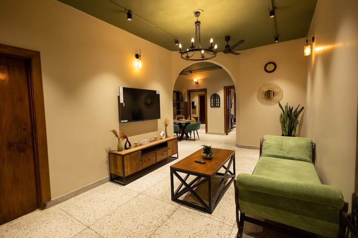 Sydämellinen tervetuloa Arbour Suitesiin, 3 BHK -huoneisto, joka sijaitsee Lucknowin sydämessä. Olemme suunnitelleet tämän tilan yhdistämään vintage-estetiikkaa korkealuokkaisiin mukaviin sisätiloihin, joita ympäröi rehevä vehreys. Tarkoituksena on luoda tila, josta et haluaisi lähteä. Tavoitteemme on tehdä majoittumisestasi mahdollisimman rauhallinen, joten jokainen pieni yksityiskohta varmistaa, että tunnet olosi sekä rennoksi että hoidetuksi.