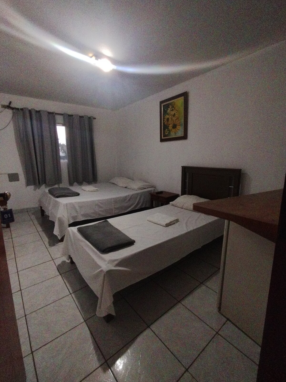 Casa bem localizada, confortável e em bairro tranquilo. Próxima a mercado, farmácia, padaria, pastelaria, pet shop e restaurante — tudo acessível a pé. Está a apenas 2 km do centro, Beira-Rio e do Hospital Municipal. A vizinhança é tranquila e segura, ideal para descanso. Casa com internet Wi-Fi, uma cama de casal e duas camas de solteiro, acomodando bem famílias ou pequenos grupos. ⚠️ No momento, a máquina de lavar não está em funcionamento. Não disponibilizo travesseiros, somente lençóis.