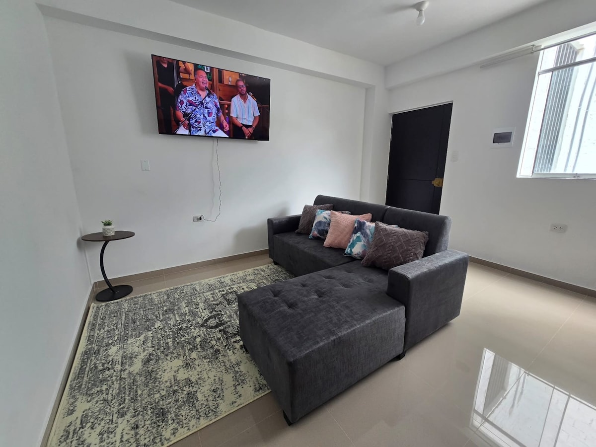 Departamento amoblado con todo lo necesario para una estadía cómoda: cama de 2 plazas, baño privado, sala comedor, cocina equipada, y buena ubicación.