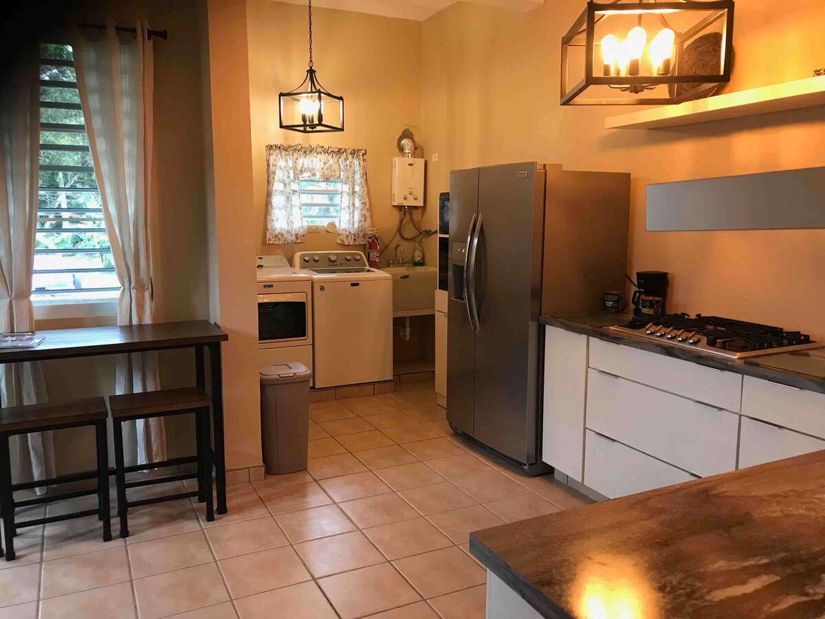 Tervetuloa Länsi-Puerto Ricoon! Astu valtavaan huoneeseen, jossa on 20 jalan korkuiset katot ja 3 000 neliöjalkaa. Täysikokoinen UIMA-allas, ulkotila grillille ja oleskelutila, täysin varustettu keittiö ja viihdealue, jossa on 65 tuuman älytelevisio, eivät tuota pettymystä! Talossa on paljon ilmastointia ja varageneraattori/vesi. Keskeisellä paikalla! 10 minuuttia Aguadan rannoille/tai ravintoloihin 20 minuuttia - Rinconin keskusta/rannat 25 minuuttia Aguadillan keskustaan ja kuuluisaan Crashboat Beachiin! 25 minuuttia BQN:n lentokentälle 2,5 tuntia - SJU:n lentokenttä