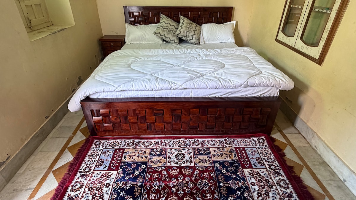Kotiruokaa on saatavilla myös pyynnöstä 🍛, joten voit nauttia aidoista paikallisista mauista majoittumisen aikana! 🌅 Tervetuloa kauniiseen perinteiseen 2BHK-kohteeseen Jaisalmerin sydämessä. Patwa Haveli 🕌 on vain 10 minuutin kävelymatkan päässä ja kuuluisa Gadisar-järvi 🌅 on 1 km:n päässä. Astu tilaan, jossa Rajasthanin perinteet yhdistyvät moderniin mukavuuteen. Nauti tilavasta oleskelutilasta, jossa on 80-tuumainen älytelevisio 📺. Voit rentoutua ja katsella suosikkiohjelmiasi Netflixissä 🍿 pitkän tutustumispäivän jälkeen.
