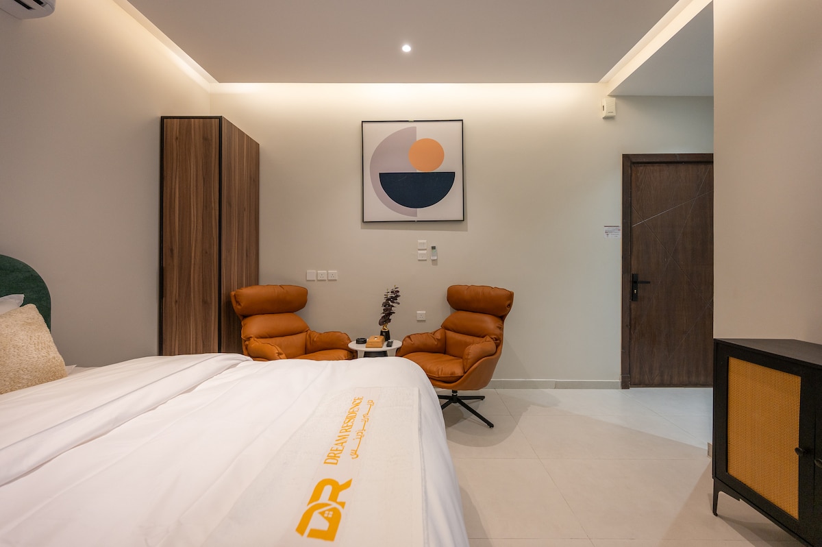 Nauti ihanteellisesta ja rauhallisesta asumiskokemuksesta. Tämä yhden makuuhuoneen huoneisto, jossa on olohuone ja ruokailutila, on suunniteltu modernilla kalustuksella. Se sijaitsee Jeddan sydämessä, lähellä Harrah-katua ja Prince Sultan -katu. Huomionarvoista on sen sijainti useiden ostoskeskusten, markkinoiden ja julkisten palvelujen vieressä. Lisäksi se tarjoaa täydellisen yksityisyyden ja älysisäänkäynnin, erittäin nopean 5G-kuituinternetin, 85 tuuman älytelevision uusimpien TV-ohjelmien katseluun ja keittiön, jossa on kaikki tarvittavat työkalut.