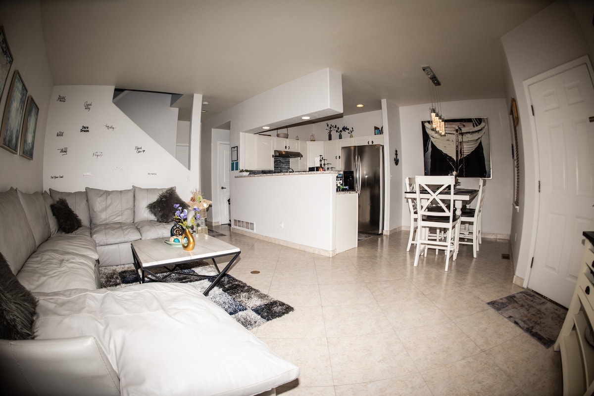Moderni, tyylikäs, puhdas 2 makuuhuoneen yksityinen kaupunkitalo, jossa voit rentoutua Denverin ja vuorten välillä. MUKAVA: Jokaisessa makuuhuoneessa on oma kylpyhuone sekä puoli kylpyhuonetta olohuoneessa. TYYLIKÄS: Tässä viihtyisässä kohteessa on suuret aurinkoiset ikkunat, vaaleanpunainen sohva, kasveja ja hauskoja aksentteja! KÄTEVÄ: Muutaman askeleen päässä W Line Lightrailista, joka vie sinut Union Stationin / lentokentälle, ja runsaasti ilmaista pysäköintiä kadulla! Helppo pääsy myös Red Rocksin valtateille!