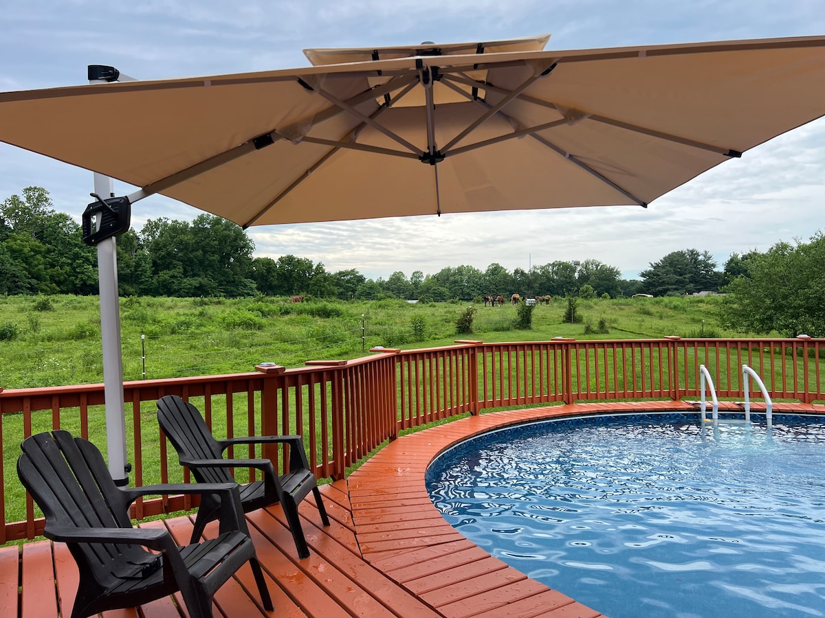 Tule kokemaan maaseutuelämän rauhallisuus ja poistu arjen ahdistuksesta. Tule kalastamaan viiden eekkerin järveemme (vain pyydystä ja vapauta), melomaan, kajakilla tai kävelemään metsässä. Katettu kuisti ja istumapaikat järven rannalla rentoutumista varten. Sijaitsee lähellä Mansfieldia ja Bridgetonia, 30 minuutin päässä Turkey Run State Parkista ja vain 30 minuutin päässä Terre Hautesta tai Greencastlestä. Tule tutustumaan kaikkeen, mitä Parke County voi tarjota! LAPSET OVAT TERVETULIAITA!