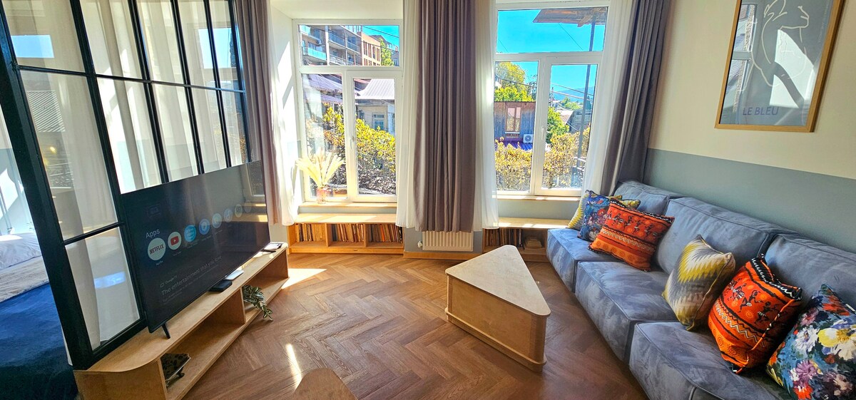 Tämä on mukava remontoitu huoneisto, jossa on paljaat tiiliseinät ja todella Tbilisin tunnelma. Tässä yksiössä on läpinäkyvä kylpyhuone, jossa on moderni kylpyamme, king-size-vuode, Chesterfield-sohva jne. Tila sopii kahdelle hengelle, ja se sijaitsee keskeisellä paikalla historiallisella kävelykadulla. Nopea WIFI-internet ja IPTV (kansainväliset kanavat) ovat maksuttomia. Huoneisto on myös hyvin sijoittunut kuljetuksen kannalta: Metro Marjanishvili ja bussiasemat ovat kävelyetäisyydellä ja vievät sinut mihin tahansa Tbilisiin lyhyessä ajassa.