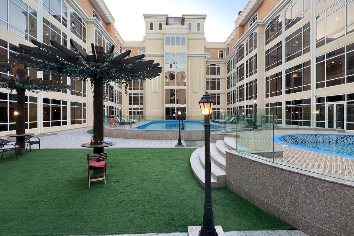 Moderni 1 makuuhuone, elokuvateatteri, uima-allas ja kuntosali | Dubai Hills