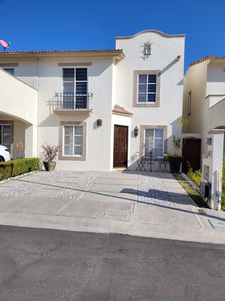 Casa Buda! Podemos FACTURAR: Donde viviras una de tus mejores experiencias, localizada en la mejor zona de Cd. del Sol, en una hermosa y segura zona residencial, casa de 2 pisos, para 2 autos y 2 recamaras, 1 1/2 baños, sofá cama (en sala) y TV 42” (a 18min del Centro Histórico de Qro, a 5min Lib. Norponiente, Rancho El PITAYO y Univ. CESBA, a 15min de Juriquilla, a 17min al Parque Ind. Balvanera, además de estar cerca de áreas comerciales), con Alberca compartida y área de juegos infantiles.