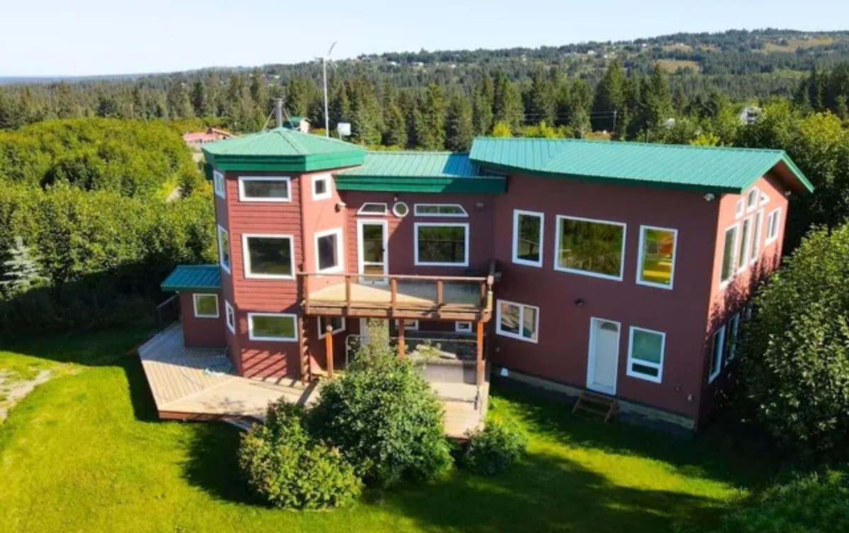 LUE VAIN VIERAIDEMME ANTAMAT ARVOSTELUT! "The Loft" on upea ja hyvin erityinen ja ainutlaatuinen kohde. AirBNB: n ylimmän 1%: n kohteista. Sijaitsee 3 hehtaarin alueella Homerin rinteellä, ja sieltä on upeat näkymät Homer Spitille, Kachemak Baylle, Beluga-järvelle ja muille. Vehreiden, taianomaisten puutarhojen ympäröimä. Nauti tästä harmonisen rauhallisesta, kauniista ja yksityisestä ympäristöstä, josta on upeat näkymät ja upeat puutarhat. Laatu, räätälöity sisustus viimeistelee 5 tähden hotellin kanssa.