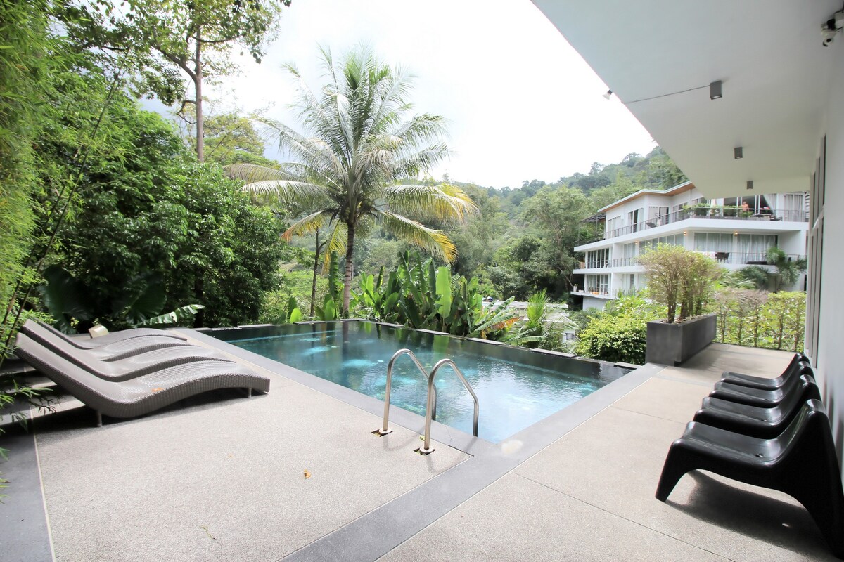Moderni huoneisto, täydellinen merinäkymä. 4 minuutin kävelymatka Kamala Beachille, kävelyetäisyydellä kauppoihin ja ravintoloihin, valtava infinity-allas