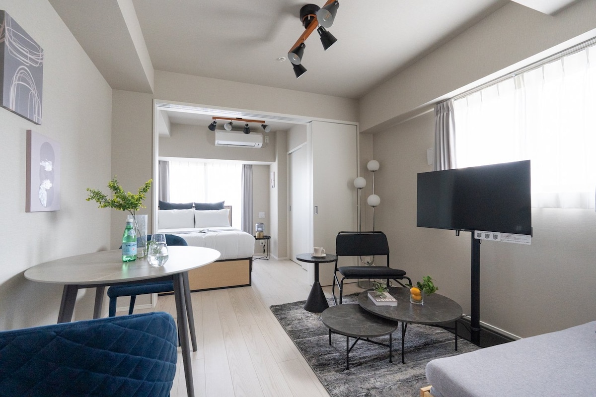 Uusi Japandi-tyylinen huoneisto | 5 minuutin kävelymatka JR-asemalle | suora yhteys Shinjukuun 11 minuutissa ja Shibuyaan 13 minuutissa | pesukone-kuivain | nopea WiFi