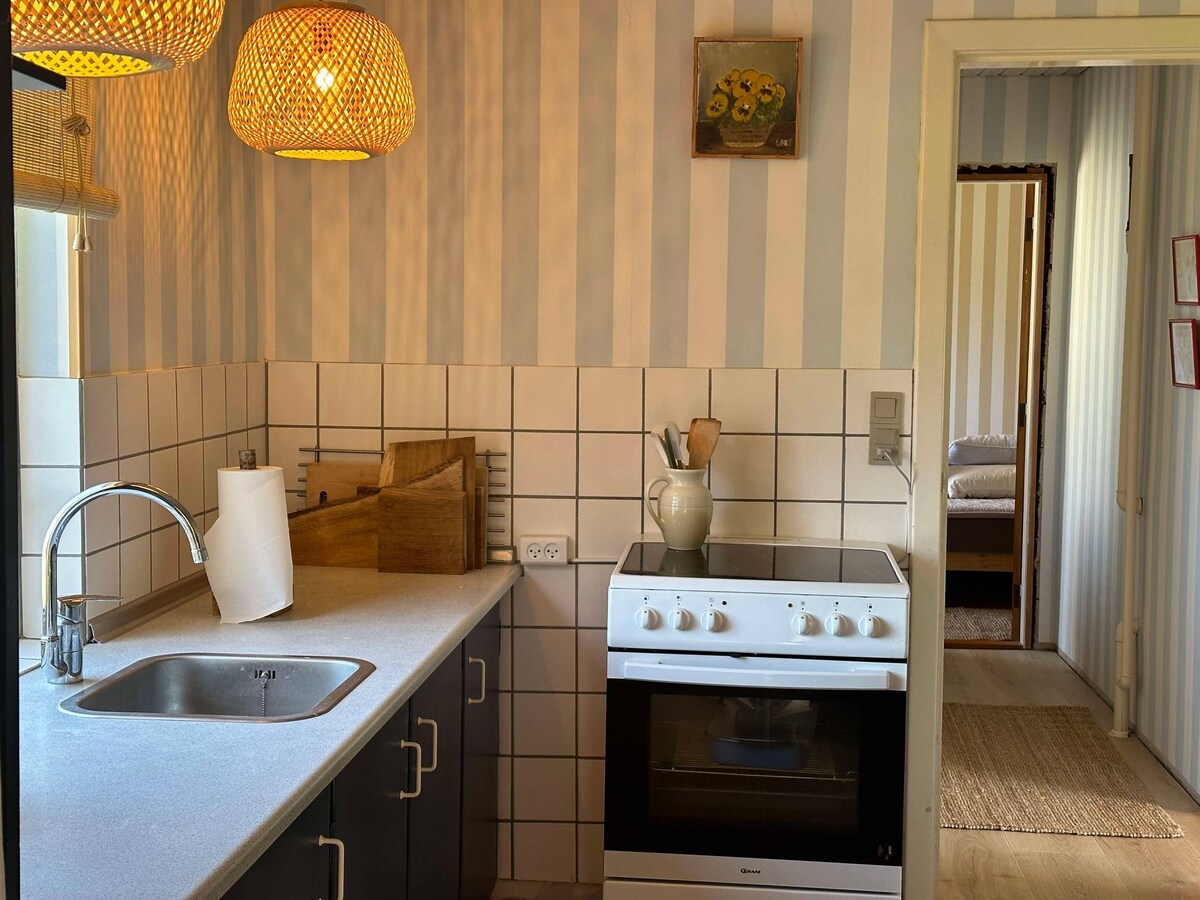 🌞 Tervetuloa yhteen Skagenin ikonisista rakennuksista – vihreillä ovilla varustettuun rakennukseen. 🌞 Skagenin vanha museo on nyt huippukunnossa. Huoneistossa on 3 huonetta, joissa on 6 vuodepaikkaa (vuodevaatteet ja pyyhkeet on tuotava mukana), 1 wc/kylpyhuone sekä keittiö/olohuone. Lisäksi siellä on terassi, jossa on grillausmahdollisuus, pöytä ja nojatuolit. Täällä on astianpesukone, pesukone/kuivausrumpu, täysin varusteltu keittiö, silityslauta/silitysrauta, hiustenkuivaaja ja tietysti TV, wifi ja kahvinkeitin