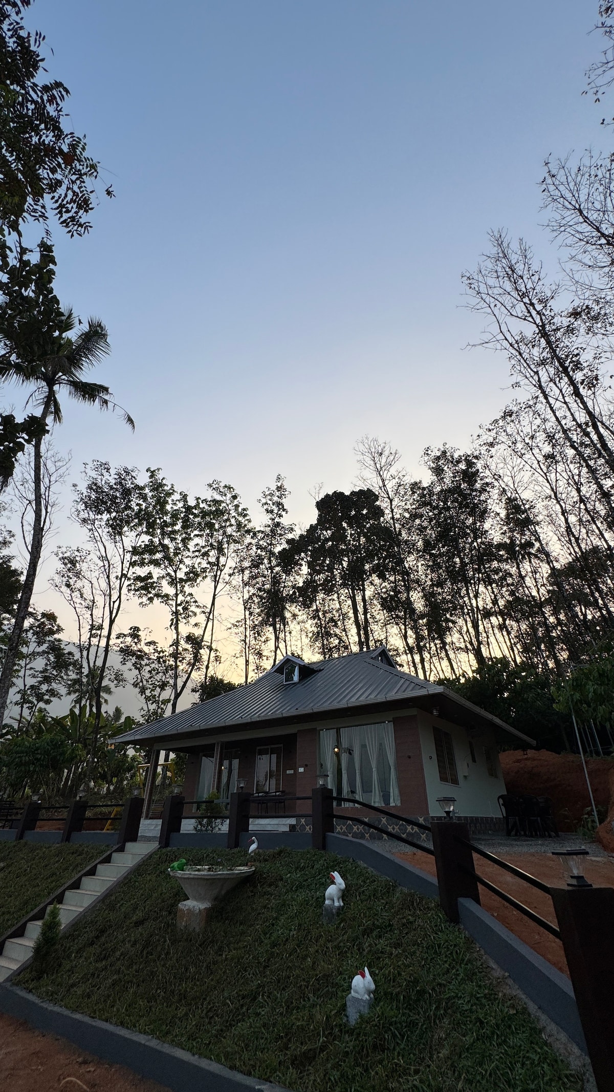 Pakene vuorille: vuoristobungalow tervetuloa rauhalliseen pakopaikkaasi Länsi-Ghatsissa! Viehättävästä bungalowistamme, joka sijaitsee Kallyanathandun vuorilla, on unohtumaton lomakohde, josta on henkeäsalpaavat näkymät vuorille ja kimaltelevalle järvelle. Astu rauhalliseen maailmaan, jossa luonto ympäröi sinua. Kohteemme on vehreä keidas, jossa on kahvikasveja ja erilaisia hedelmäpuita. Täydellinen paikka ladata akkuja ja tutustua Keralan luonnonkauneuteen