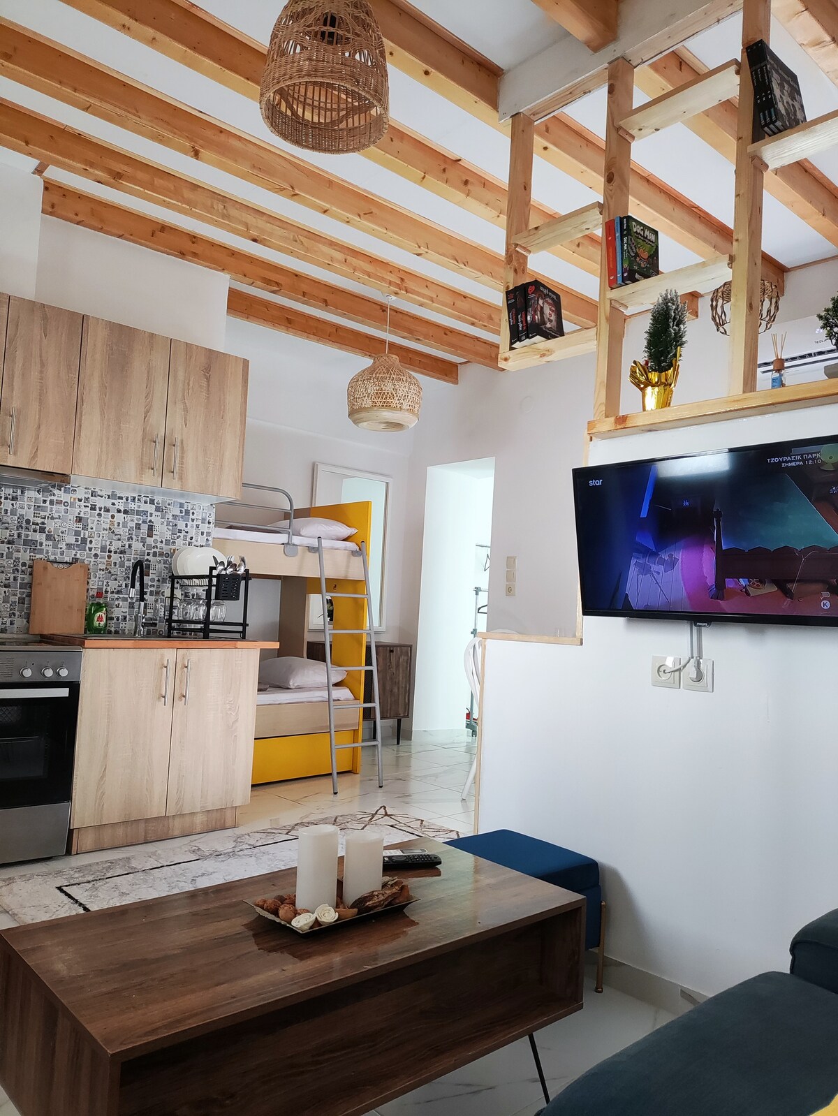 Yksityinen kattoterassi Chiosin kaupungin sydämessä! Tämä moderni yksiöhuoneisto tarjoaa rauhallisen majoittumisen ja upeat panoraamanäkymät Egeanmerelle. Sen kohokohta? Suuri yksityinen terassi, jossa on nojatuoleja, ruokapöytä ja henkeäsalpaavat näkymät merelle ja auringonnousuun. Ihanteellinen yksin matkustaville, pariskunnille tai digitaalisille nomadeille, jotka etsivät mukavuutta, rauhaa ja kätevyyttä – kaikki vain muutaman askeleen päässä kahviloista, kaupoista ja satamasta.
