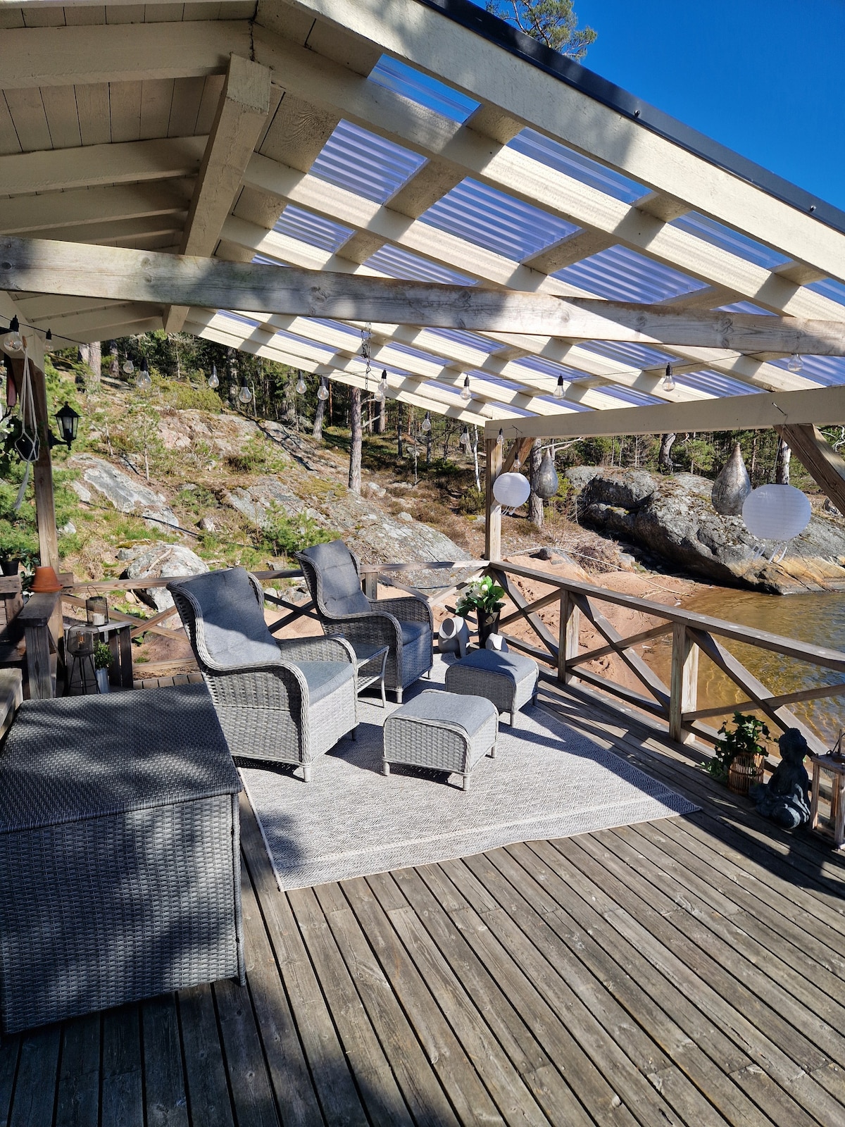 2025 täysin kunnostetusta modernista mökistä on kauniit näkymät merelle. Nauti ajasta terasseilla ja viihtyisässä saunassa tai pulahda meressä. 3 erillistä makuuhuonetta (2 pää- ja 1 saunamökissä) Kummassakin 2 vuodetta ja lisäksi päätalolla ja saunamökin tuvassa on vuodessohvat. Fiskarudden tarjoaa tilaa isommallekin porukalle. Ranta on syvä, joten mökille pääsee helposti myös veneellä. Meillä on aiemmin ollut pelkkä Saunamökki vuokralla, ja Airbnb:stä löytyy siitä paljon arvioita.
