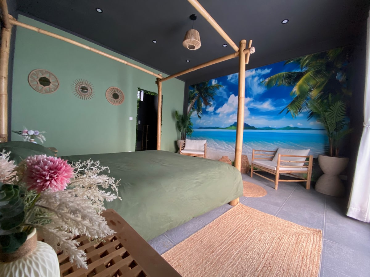Ylellinen loma-asunto, jossa on ilmastointi, uima-allas ja yksityisyyttä
