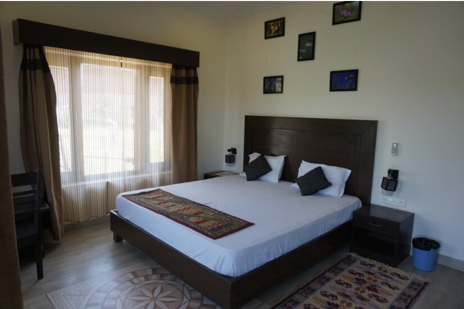 A resort with Individual cottages with private sitouts, close to the main attraction of the city- the western group of hotels. It has three types of cottages- deluxe, superior and premium. Price of each type differs. It has a flexible check in policy for its guests and is pet friendly. We can arrange local sightseeing, jungle safari etc at a charge. It has a restaurant, lawn,banquet hall, conference room. Private parties allowed. Guest can enjoy cycling, fun activities at the resort.