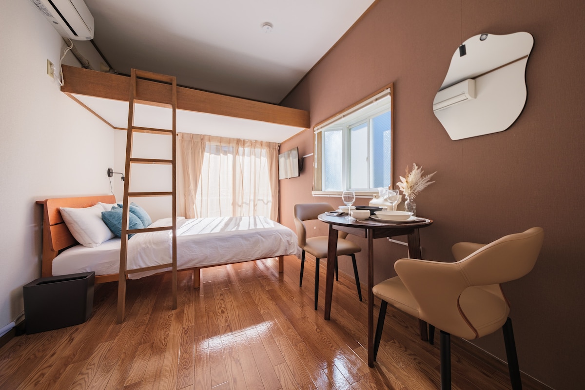 ■15 minuutin junamatka Mitan asemalta MITAKA WOOD ROOM sijaitsee Mitakan asemalla, noin 15 minuutin päässä Shinjukusta pikajunalla ja noin 8 minuutin päässä asemalta kävellen.Aseman etuosa on vilkas, ja siellä on monia kauppoja, mutta se on rentouttava asuinalue, jossa on paljon viheralueita, joten se on suosittu alue niille, jotka haluavat majoittua rauhallisesti. Kichijojin ■vieressä Kichijojilla on ravintoloita, erilaisia kauppoja, kahviloita ja vanhanaikainen juomakatu, ja se on seuraava asema, ja sitä suositellaan kävelyyn ympäri kaupunkia. Vain lyhyt kävelymatka ■Ghibli-museoon Ghibli-museo on 10 minuutin kävelymatkan päässä, ja Inokashiran puisto, jossa museo sijaitsee, on myös venelampi ja eläintarha, joten se on suosittu paikka kävellä. ■Vanhanaikainen ostoskatu Mitakan aseman ostosalue on täynnä ravintoloita, supermarketteja, leipomoita, kahviloita, kylpylöitä ja julkisia kylpylöitä, joten voit nauttia asumisesta Tokiossa. ■Täysin lainattu Voit käyttää asunnon pohjakerroksessa olevaa 1LDK:ta yksityiseen käyttöön.Huoneen sisätilat on koristeltu Ghibli "Totoron" kaltaisilla tavaroilla ja luonnon tunteella.