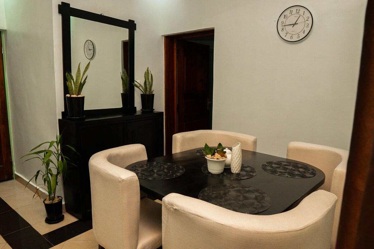 Vuokrausyksikkömme on suunniteltu tekemään vierailustasi Kigalissa mahdollisimman mukavan. Se sisältää kaikki tarvitsemasi mukavuudet, mukaan lukien täysin varustettu keittiö, mukava king-size-vuode, nopea internetyhteys, kaapeli-tv, Expresso-kahvinkeitin, huippuluokan kaksoisvyöhykkeen paistinpannu, iso moderni suihku, jossa on hyvä vedenpaine. Pesukone/kuivausrumpu asuinyksikössä. Olitpa sitten Kigalissa liike- tai vapaa-ajan takia, vuokramme on täydellinen paikka, jota voit kutsua kodiksi majoittumisesi aikana.