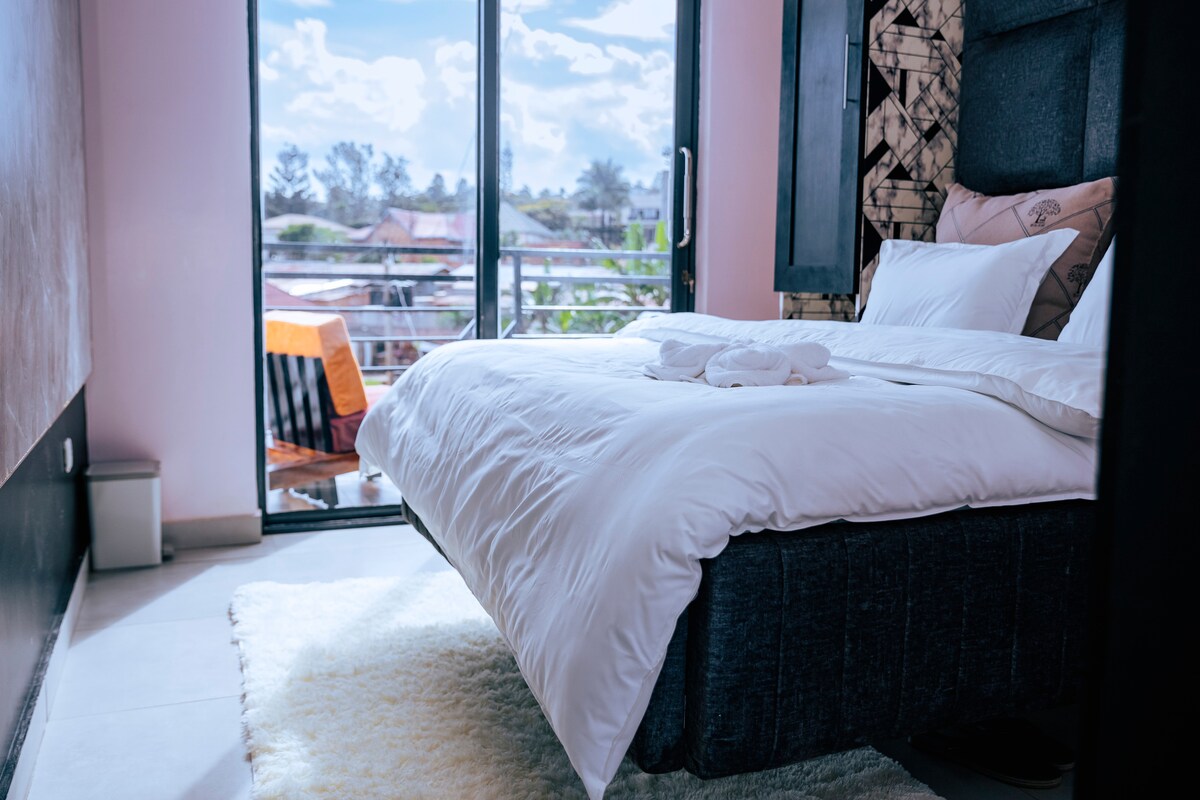 Pakene tähän viihtyisään, täysin kalustettuun 1 makuuhuoneen huoneistoon, jossa on jaettu pysäköinti, rehevä puutarha ja upeat näkymät Rwintare Kacyirun kosteikolle. Prime location: 4 mins to Kigali Convention Center, 3 mins to Office of the President, 2 mins to US Embassy, 6 mins to Downtown Kigali (Marriott, Sheraton), 3 mins to RDF HQ, 5 mins to King Faisal Hospital. Lähellä huippuruokapaikkoja, kuntosaleja ja klubeja. Sisältää wifin, älytelevision ja modernin sisustuksen - täydellinen ulkomaalaisille, diplomaateille tai yritysmajoituksille