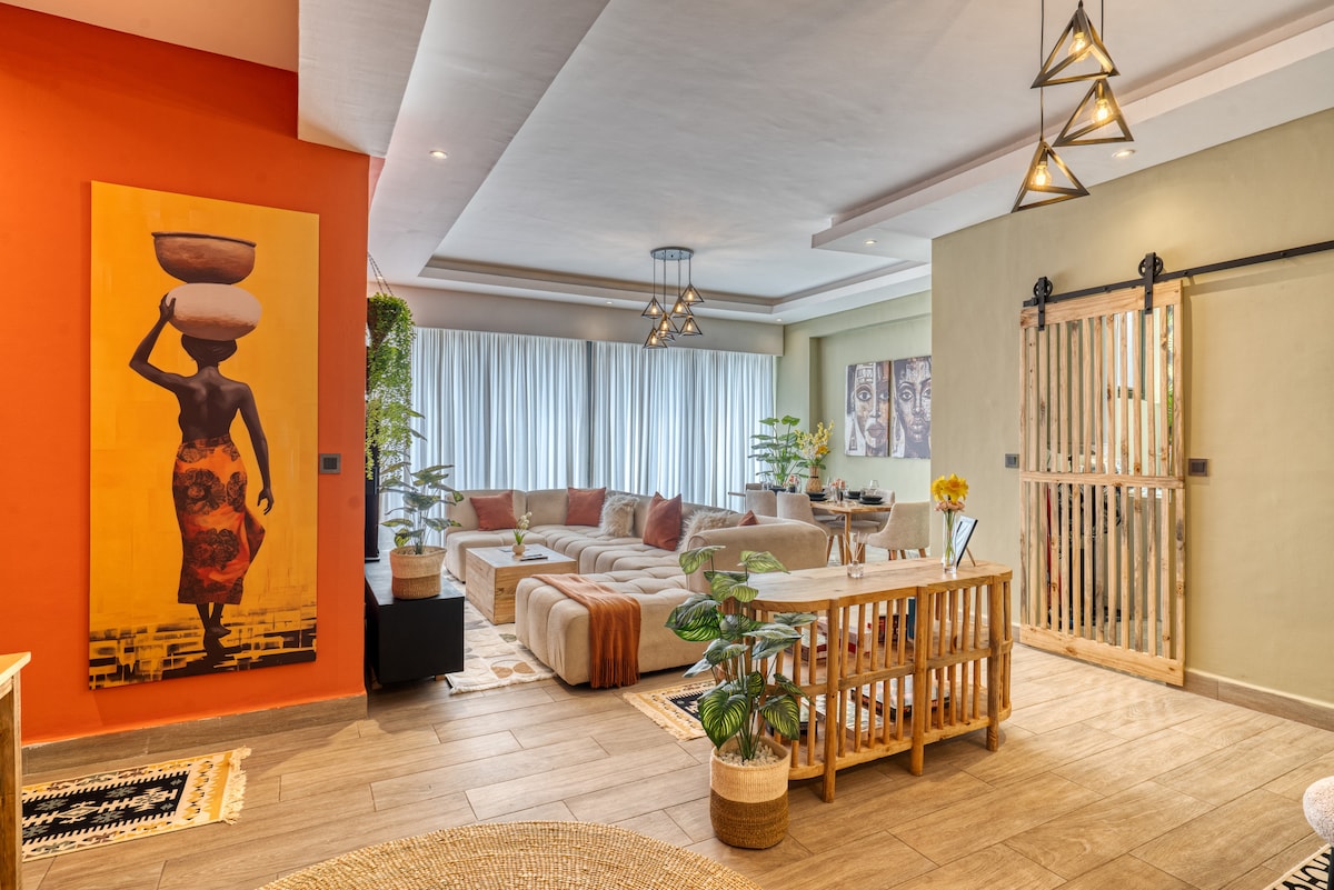 Tervetuloa 17. kerroksessa sijaitsevaan boheemiin kohteeseen Kilimanissa. Tässä on ruokalista: 🌅17. kerroksessa sijaitseva huoneisto, josta on henkeäsalpaava näkymä auringonlaskuun 🛒🛍️kävelymatka Yaya-keskukseen 🛋️ yksityinen parveke 🏋🏾♀️Täysin varustettu kuntosali 🏌🏽♂️⛳️sisätiloissa golf 🏓Pingis 🚀Nopea wifi 🍿Netflix 💼Työtila 🧑🏾🍳Turkkilainen ravintola paikan päällä 💆🏾♂️💆♀️ Kylpylä- ja hierontapalvelut katolla 🎲 📚 Kirjoja ja pelejä 🎨🪴Alkuperäistä taidetta ja kasveja ☕️Kahvinkeitin 🍳Täysin varusteltu keittiö 🛌Mukava kiropatja 🧹Siivouspalvelut sinun mukavuuttasi varten ja paljon muuta...