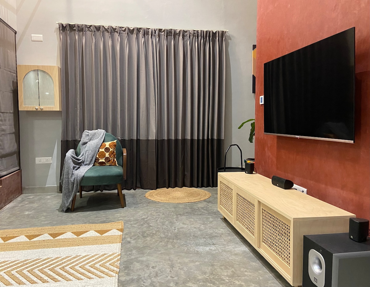 Tämä on Ultra Luxury 1 BHK, jossa on täysin ladatut mukavuudet, ja ehdotamme sen olevan kaupungin paras yksityisellä porealtaalla ja modernilla estetiikalla! Kyllä, tarkoitamme sitä. Vieraile ja koe "The Essence" AVOIN HAASTE: Jos löydät vastaavan kohteen 5–10 km:n säteeltä mukavuuksien ja hintalapun suhteen, tarjoamme sinulle ilmaisen majoittumisen kohteessa! Kuuntelemme vieraitamme: Katso, mitä vieraamme kertovat kohteestamme, ja uskomme "Atithi Devo Bhavaan, joka tarkoittaa "Vieras on Jumala"