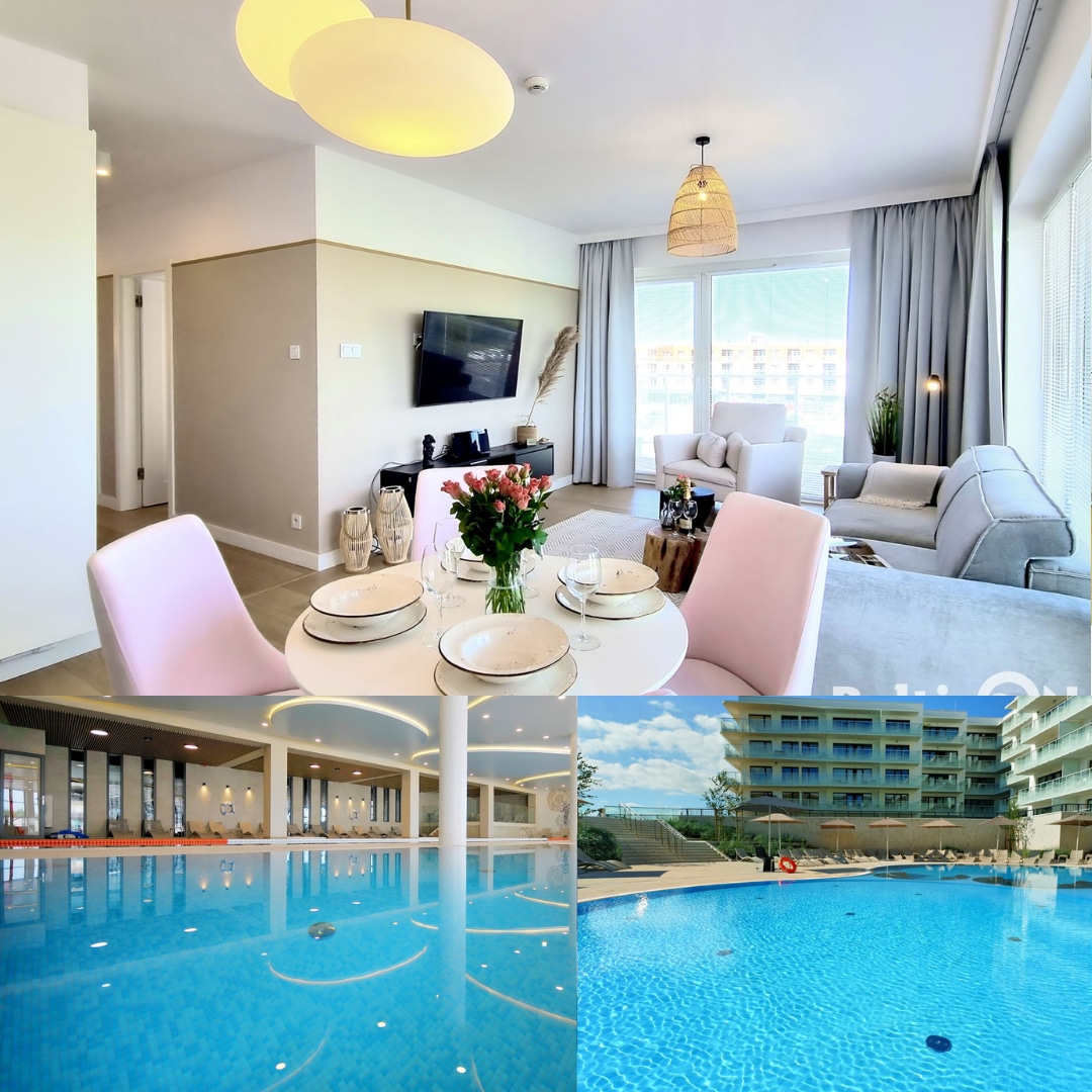 Ylellinen, yhden huoneen 26 metrin huoneisto, josta on näkymä puistoon, sijaitsee 3. kerroksessa modernissa hotellikompleksissa, 20 metrin päässä rannalta. Se tarjoaa hiljaisen ja täydellisen yksityisyyden, ilmastoidun ja allergiaystävällisen. Siellä on tv, WIFI, puhelin, tallelokero, liinavaatteet, pyyhkeet, kylpytakit, hiustenkuivaaja ja kosmetiikka. Pääsy lisämaksusta uima-altaalle, melontaallas lapsille, valmistutorni, kuiva, höyry, aromaattiset saunat ja porealtaat.