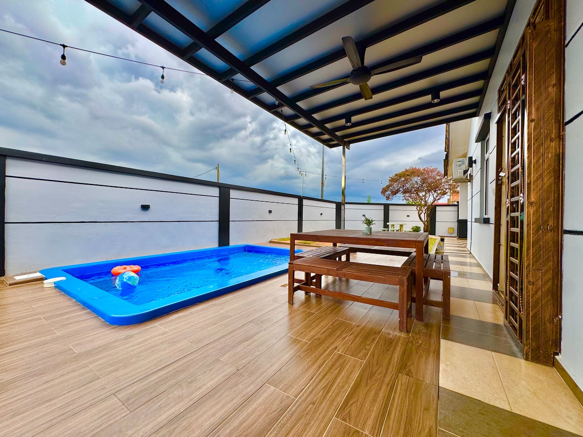 🌴 Tervetuloa TropINN Corneriin, Desaruun 🌴 Tilava kulmabungalow, joka sopii täydellisesti perhe- ja ryhmälomille (enintään 30–34 vierasta). Yli 900 m²:n tiloissa, joissa on: ✨ Suuri pondok ✨ 4,6 x 13,8 metrin yksityinen uima-allas ✨ Koripallokenttä ✨ Puutarha ja kävelypolku ✨ Mukavat, luonnollisesti tyylitellyt sisätilat 📍 Ensiluokkainen sijainti: Desaru Beach: 10–15 minuuttia 🌅 Waterpark / Hard Rock / Westin: 10–15 minuuttia SKS Mall: 3–5 minuuttia / kävelymatka Hedelmätila: 10–15 min Sungai Rengitin meren antimia: 25–30 minuuttia Nauti helppokäyttöisistä nähtävyyksistä, ruoasta ja kahviloista! ✨