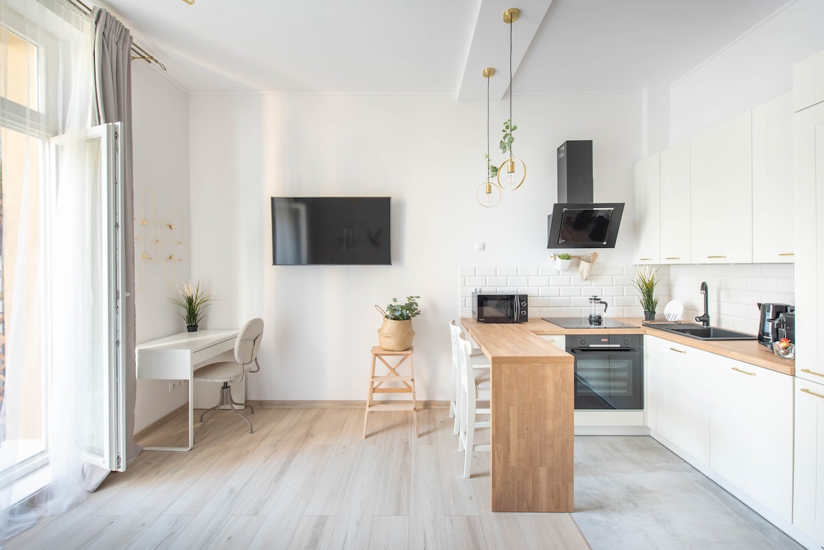 Moderni Scandi-tyylinen huoneisto Krakovan sydämessä