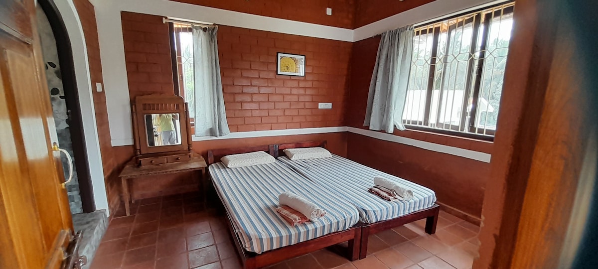 The marthen hut, joka sijaitsee cashew-hedelmätarhan keskellä, on ainutlaatuinen pioneerityylinen maja, joka on valmistettu puusta, mudasta ja kookospähkinänlehdistä ja jossa käytetään täysin kestäviä materiaaleja. Siinä on valikoitu avomuotoilu, jota ympäröi vehreä vehreys ja joka tarjoaa vieraille ainutlaatuisen asumiskokemuksen. Majassa on keittiö, erillinen kylpyhuone ja pikkukivipäällystetty patio, jolla voi nauttia kahvia! Paras nurkkaus on parveke, joka tarjoaa vieraalle mahdollisuuden nähdä auringonlaskun, auringonnousun ja tähtien katselun.