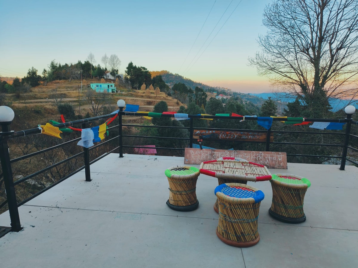 Chinar is a serene 1BR retreat located in the peaceful Majkhali region, offering a perfect escape from the hustle and bustle of daily life. This cozy property features a comfortable bedroom, large glass windows with breathtaking views, and an attached bathroom. Surrounded by lush oak forests and terraced fields, it's an ideal getaway for nature lovers, with opportunities for relaxation, adventure, and cultural exploration in the heart of the mountains!!