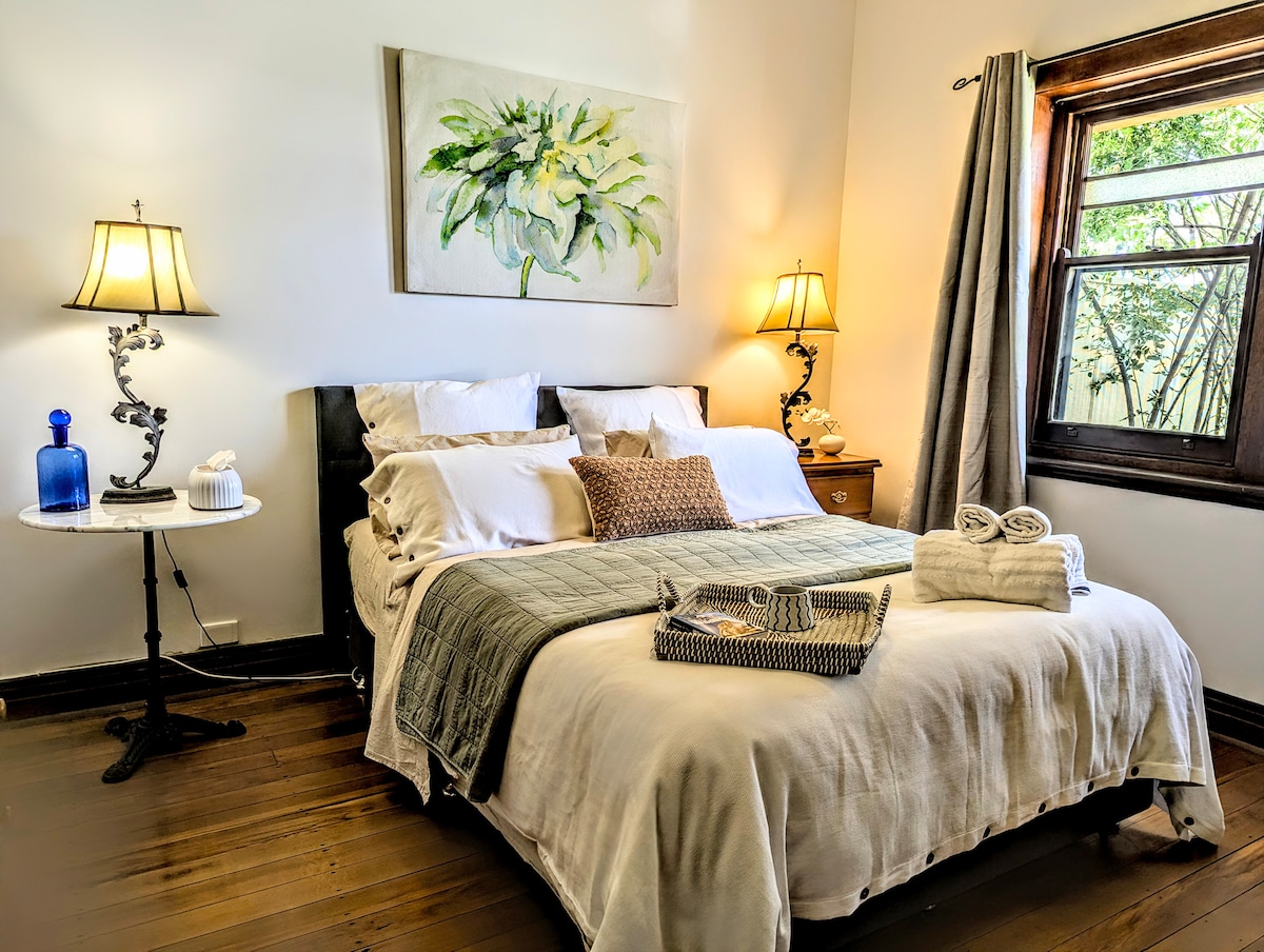 Kaunis ympäristöystävällinen kuningatar Annen tyylinen huvila rauhallisella kadulla King William Roadin vilkkaan kahvila- ja boutique-ostoskadun ulkopuolella, 10 minuutin päässä Adelaiden keskustasta. Historiallisessa kodissamme on loistava japanilaistyylinen keittiö/oleskelutila, joka avautuu upeaan varjoisaan puutarhaan, jossa on täysikasvuisia japanilaisia vaahterapuita. Kalustettu antiikkiesineillä ja japanilaisilla huonekaluilla ja sisustettu alkuperäisillä taide- ja teatterijulisteilla. Täydellinen perheille, yhdessä matkustaville ystäville, liikematkaille.